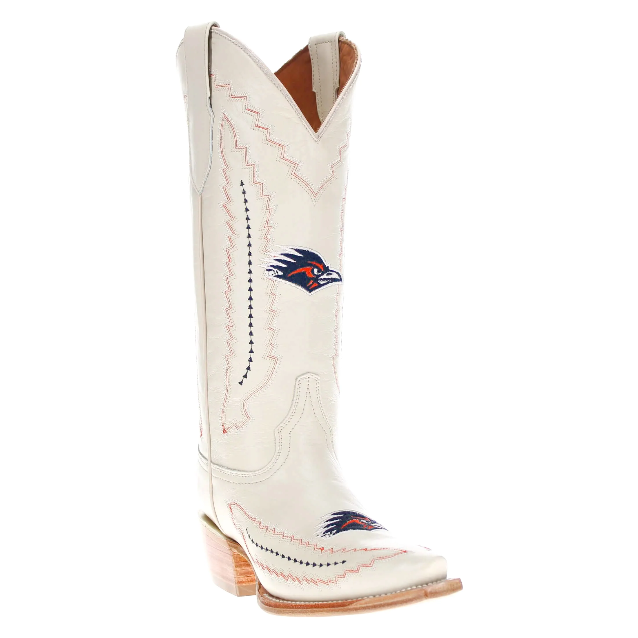 Our best seller for a reason, The Naomi is the perfect mix of school pride and Texan charm. Featuring vibrant navy and orange stitch patterns and officially licensed logos, these boots are designed to stand out on game day and beyond. More than just footwear, they’re a bold expression of your Roadrunner spirit with every step. Let's Go 210!